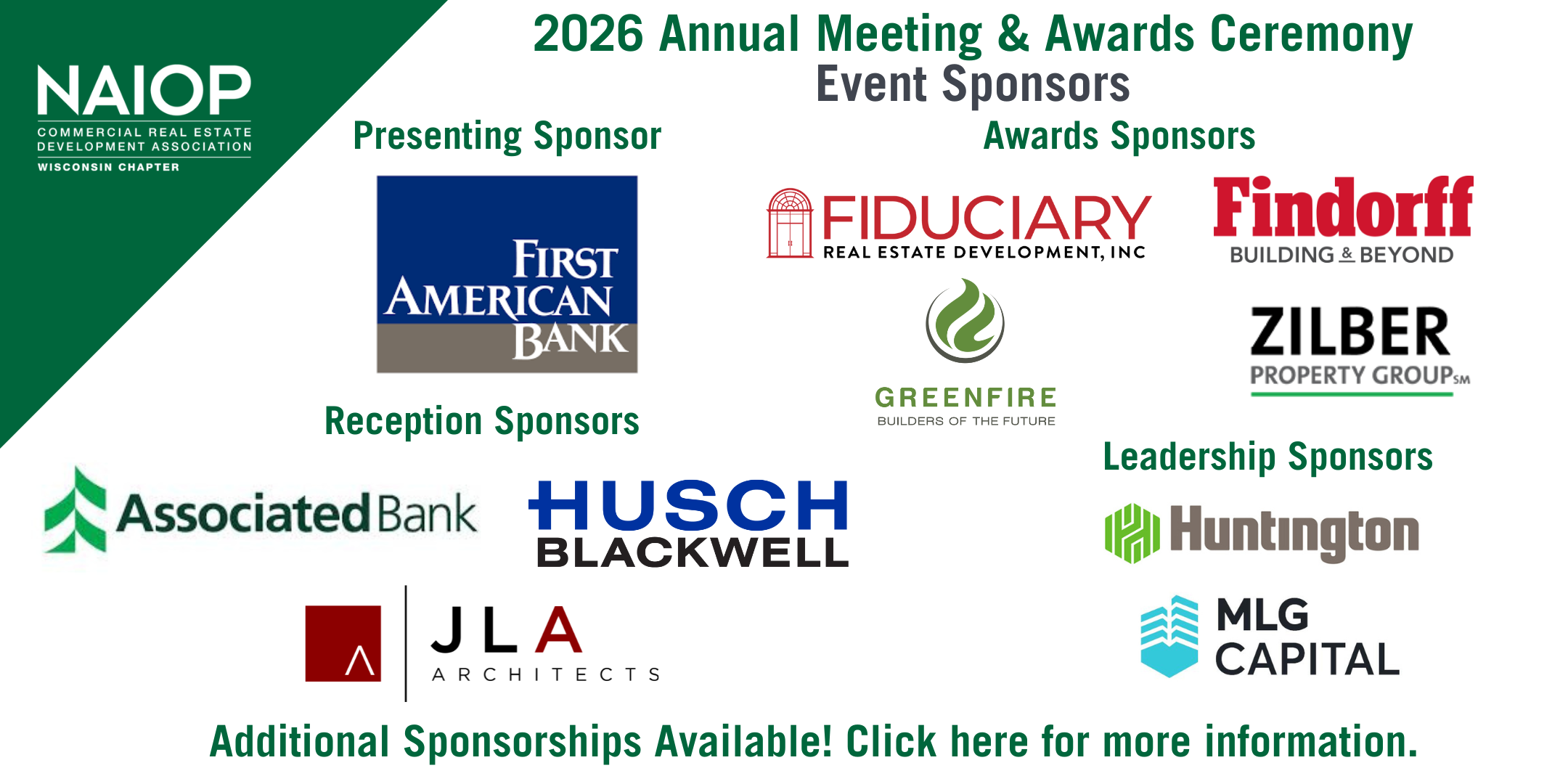 Confirmed 2026 NAIOP Annual Sponsors, please email Katie to reserve your complimentary tickets.