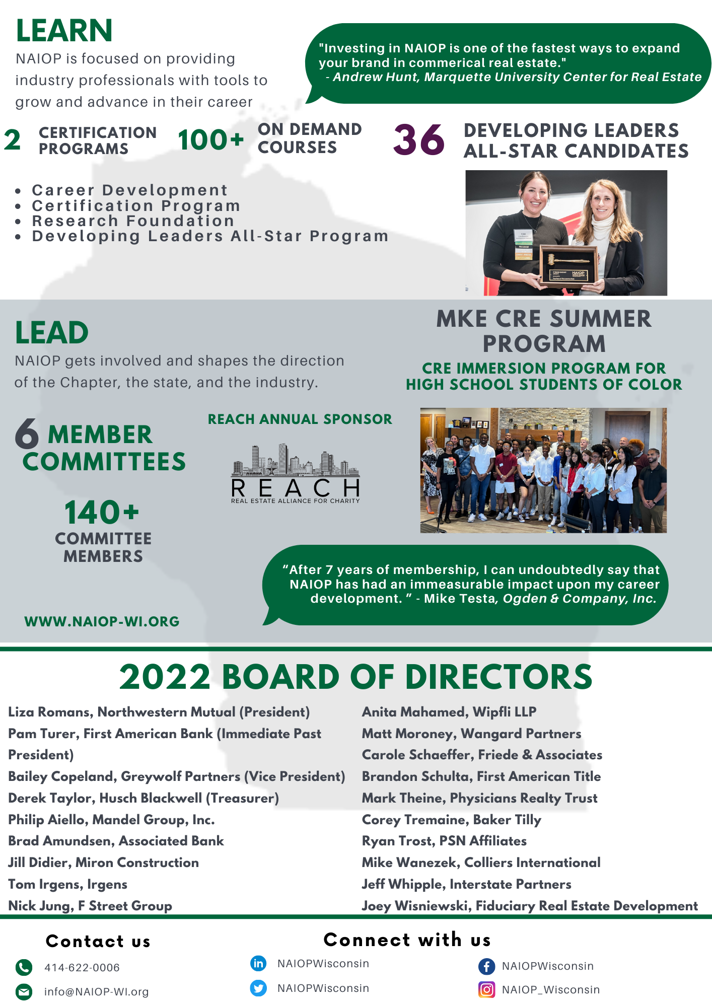 Thanks to all of our amazing members, board of directors, sponsors and all who helped make 2022 another great year here at NAIOP Wisconsin! We couldn't have done it without you and we are looking forward to another successful year in 2023.