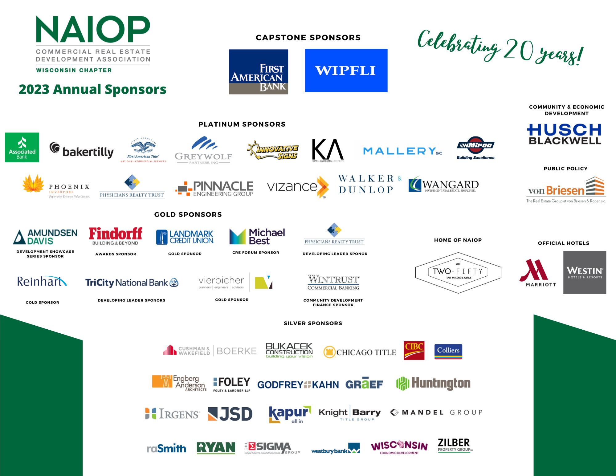 Thanks to all of our amazing members, board of directors, sponsors and all who helped make 2023 another great year here at NAIOP Wisconsin! We couldn't have done it without you and we are looking forward to another successful year in 2024.
